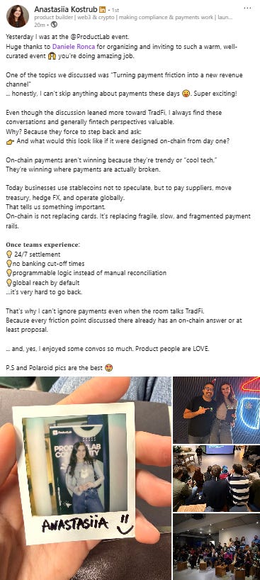 This year taught me that community building means accepting that not every connection deepens, and not every early relationship survives growth. Some doors close as new ones open. The hard part isn’t the change itself, it’s learning to invest energy where it multiplies rather than where it drains. What remains are the beautiful relationships with Product Heroes, PMF in Zurich, Product Masterclass in Munich, Hatch conference, Talent Crunch, Product Voyagers, Led by Community, the inner ProductLab Community, and others who show up with the same belief: We rise by lifting others. Thank you!