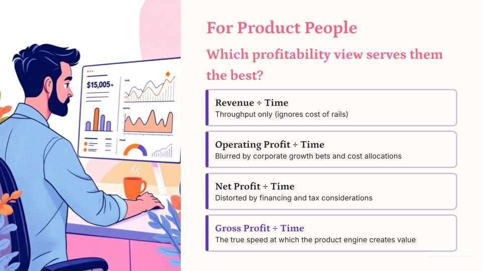 This is where product managers should focus. Gross profit strips away the noise and shows you: is this feature, product, or initiative actually creating value for the business?