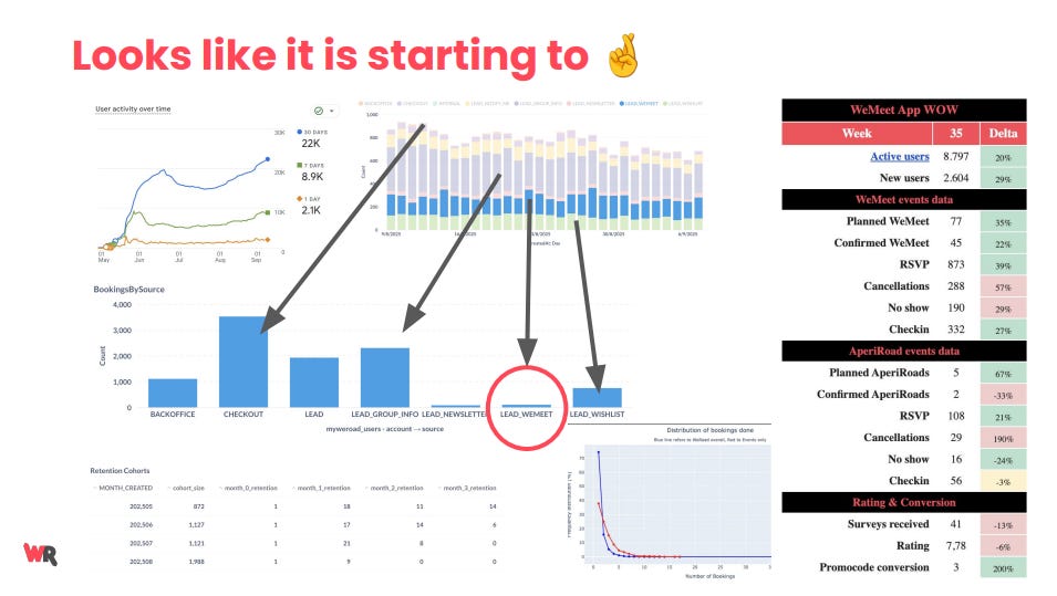 More revealing: 6-7% of event attendees had already done a WeRoad trip. 2% convert to become WeRoad customers after attending events.
