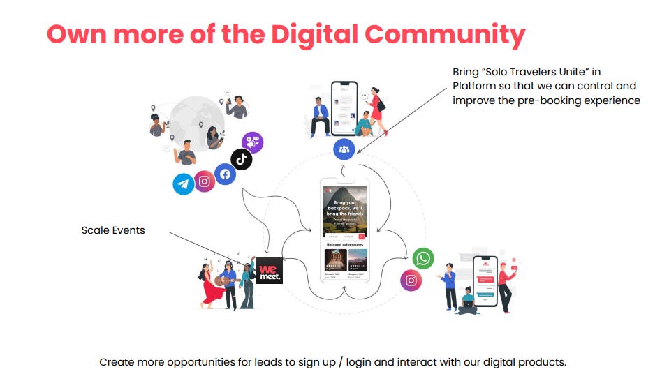 The next phase? Replace Facebook groups with their own platform. Control the pre-trip conversations where fear and uncertainty live.