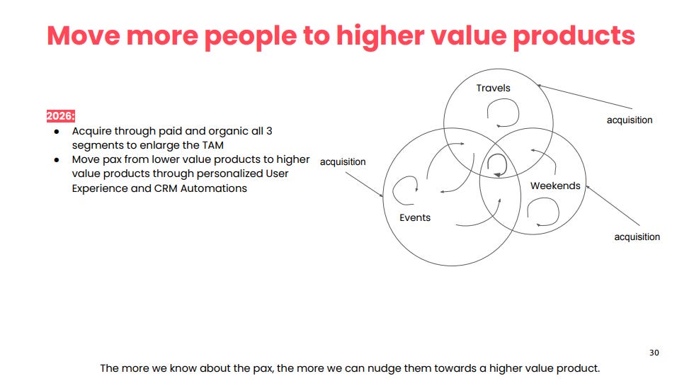 But here’s the gap: WeRoad doesn’t yet nudge people enough. Someone does a trip, makes friends—then those friends do a running club in Berlin next week. WeRoad should connect those dots.